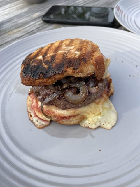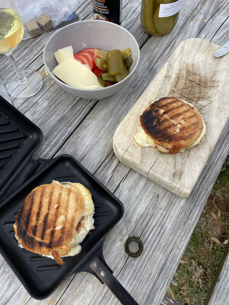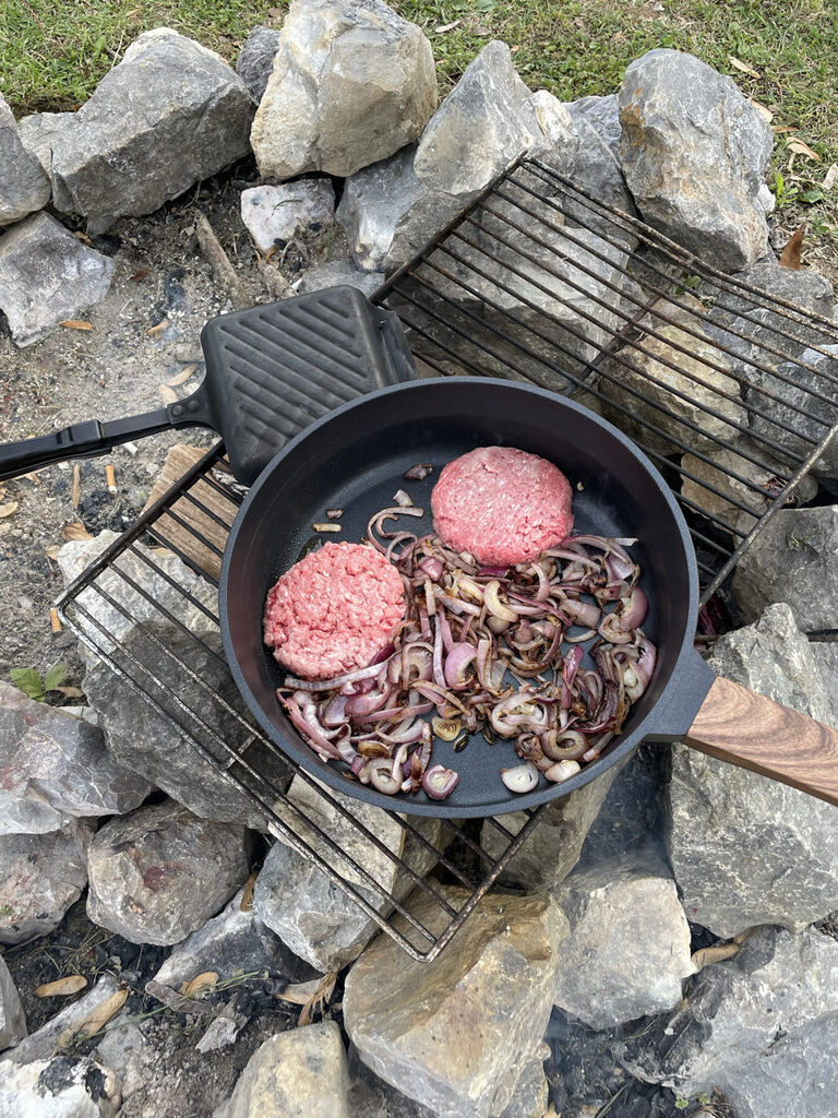 Zeit für Seele baumeln lassen und lernen, das gammeln auch zur Reise dazu gehört! Was für einen schönen Platz wir gefunden haben, ist mir eigentlich erst heute Morgen klar geworden. Ja, mein eigener Ehrgeiz steht mir immer noch im Weg. Das muss aufhören! Einfach der Ehrgeiz, bestenfalls immer frei zu stehen oder im Nationalpark zu sein, ist auch völliger Blödsinn und getrieben von Social Media. Hei, es ist doch traumhaft hier. Wir stehen am Wasser, uns gegenüber einige, die vielleicht hier leben oder ihre Ferien hier verbringen. Ja es ist kommerziell, aber die Natur und alles was der Platz zu bieten hat, perfekt! Die Gassirunde heute Morgen bei Dämmerung, hat es mir nochmals klar gemacht. Da das Wetter heute Vormittag noch etwas bewölkt war, hab ich die Zeit genutzt, um zu „gammeln“. Reingegangen und den Beamer angestellt und einfach ein paar Serien geguckt. Herrlich, ohne schlechtes Gewissen, dass noch irgendwas erledigt werden muss. Als die Sonne langsam rauskam, habe ich mit Agnes gechattet. Agnes ist „unsere“ Rangerin und einfach Gold wert! Sie wusste, wo wir als nächstes hin wollen und hat uns so viele wertvolle Tipps gegeben und einen entscheidenden Hinweis! Bucht im Voraus, dort kann es voll werden, nur wenige Restplätze sind noch verfügbar. Gesagt getan. Wir werden die nächsten fünf Nächte ab morgen, im Great Smokey Mountain Nationalpark übernachten. Im Voraus und ohne einen Platz zu kennen, zu buchen, mache ich ja nicht gerne. Kontrollfreak! Aber hei, warum nicht. Der Service auf der Buchungsseite ist auch wirklich perfekt, man kann sich den Platz schon anschauen. Sieht gut aus, eventuell könnten wir Probleme mit Strom bekommen, da die Bäume das Solar vielleicht verdecken. Aber, es ist ja nur ein Ausgangspunkt für diverse Touren, die wir ebenso, Dank Agnes, geplant haben. Agnes, wie ich schon schrieb, Reiseführer wäre dein Job 😅, wir buchen dich sofort! Zum Glück laden wir Strom, sobald wir fahren, somit sollte es kein Problem werden. Noch eine kleine Gassirunde am Nachmittag und dann sollte es heute den ersten selbstgemachte Burger geben. Wir haben ja wirklich einiges an Equipment mit, aber es ist einfach eine andere Nummer, sein Essen auf dem Lagerfeuer zuzubereiten. Man muss halt überlegen, wann was, wie und in welchem Behältnis, warm gemacht wird. Spaß hat’s gemacht und er war soooo lecker. Guckt selbst, hättet ihr auch Bock drauf? Bis morgen, wir freuen uns total, auf das was kommt!
