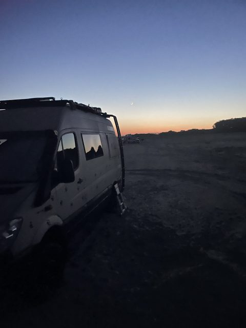 Der erste komplette Sommertag hier und endlich das erste Mal baden. So kann man den Tag am besten zusammen fassen. Wobei ich morgens meinen Kaffee wieder im Jogger und in einer Decke eingehüllt, genossen habe. Zum schlafen wirklich perfekt, dass es sich so gut nachts abkühlt, aber da die Sonne hinter dem Sprinter aufgeht, sitze ich immer erst im Schatten. Als erstes gucke ich ha immer ins Handy, die neuesten Nachrichten checken oder hier die Berichte schreiben. Ab und zu schweift mein Blick dann wieder Richtung See und was sehe ich da? Genau vor mir zwei Rehe, die sich zum trinken hierher verirrt haben. So niedlich. Kurz danach noch drei Pelikane, dachte immer, die wären nur am salzigen Meer 🤷♀️ Ne kühle Brise weht hier auch, was uns die nächsten Tage wahrscheinlich aber auch sehr gelegen kommt, wenn es wieder über 30 Grad tagsüber wird. Nach dem Frühstück, haben wir erstmal ausgiebig telefoniert und dabei noch nicht unsere Markise rausgemacht, was zur Folge hatte, dass die Sonne unsere Haut, doch recht heftig angegriffen und etwas verbrannt hat. Also, jetzt oder nie, rein in den See, zur Abkühlung. Herrlich, blieb auch nicht das einzige Mal, an diesem Tag, selbst Zoco konnte ne kleine Schwimmrunde machen 🥰. So langsam geht es hier Richtung Wochenende und die Zelt und Wagenburgen, werden mehr. Und sie bringen ein Equipment mit, das ist nicht zu fassen. Neben fetten Trailern, immer von noch fetteren Pickups gezogen, ab und an kommt auch ein Trecker, falls es jemand nicht durch den tiefen Sand schafft. Jetskis und Boote… was ein Schauspiel, also langweilig wird es hier nicht, eher laut, denn es werden regelrechte Rennen auf dem See gefahren. Ich weiß nicht so ganz, was ich davon halte, natürlich haben die Spaß, hätte ich auch, aber wenn ich an die Tiere am Morgen denke, kommen schon Zweifel auf. Aber vielleicht ist es einfach auch ein miteinander, jeder hat eben seine Zeiten… und ich bin einfach immernoch zu deutsch, um die amerikanische Freiheitskultur zu verstehen…. Bis morgen!