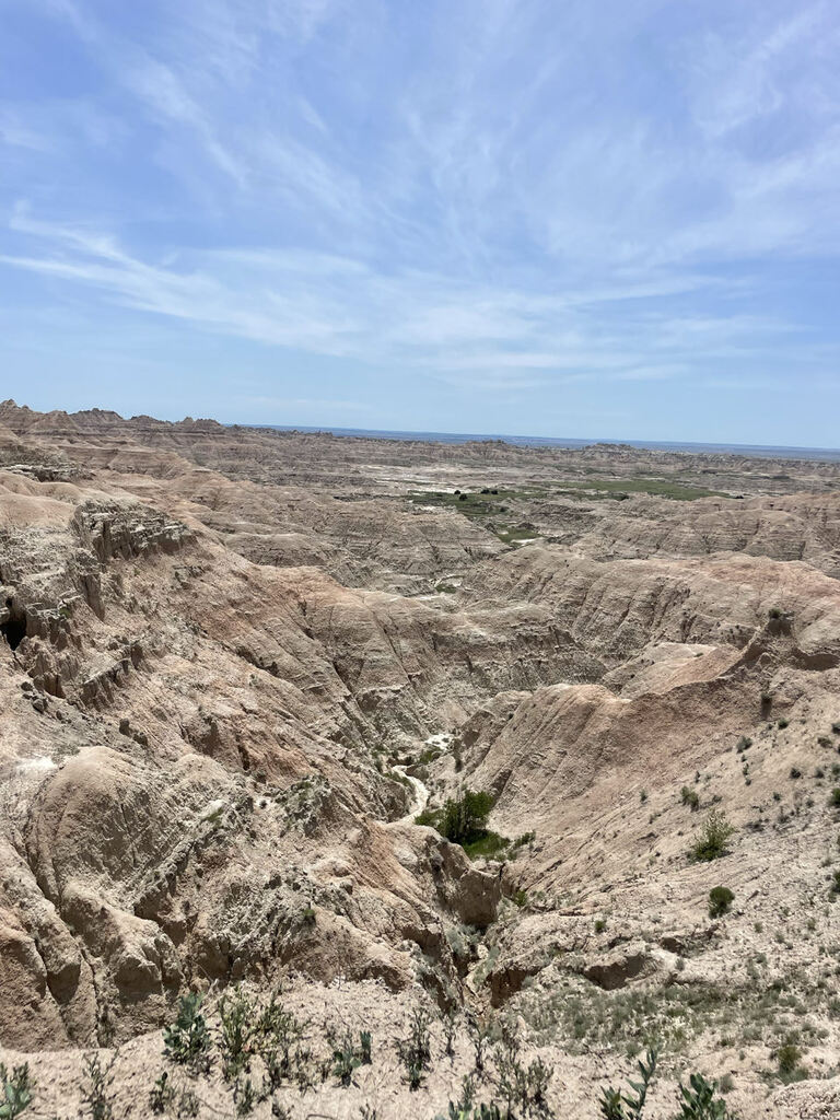 Bevor der heutige Text kommt, ich hab noch ein Video gestern eingefügt, wo Pat Indianertypisch, mir den Weg zeigt und ich Zivilisationgeschädigt, auf dem Handy die Route nachvollziehen möchte 😇🙈😅 So schön es auch bei Pat war, wir wollten weiter. Der Abschied viel uns allen schwer und sicher hätten wir auch die Zeit, hier ein paar Tage zu bleiben. Allerdings ist es hier auch wirklich intensiv, von den Eindrücken, von den Gesprächen. Ich kann es nicht erklären, aber wir sind erschöpft. Viel Schlaf hatten wir ja nicht, in der letzten Nacht und wir wollen uns ein Plätzchen suchen, wo wir erstmal ankommen und entspannen können. Schließlich stecken auch die vielen Kilometer der letzten Tage noch in unseren Knochen. Bevor wir jedoch uns ein Plätzchen suchen, fahren wir zurück in den Nationalpark und dort zum Visitor Center. Die sind immer gut ausgestattet mit Karten und weiteren Informationen. Kostenlos, aber natürlich gibt es auch immer jede Menge Merchandising Artikel. Einen nehmen wir immer mit, eine Sticker / Aufkleber für unsere Kühlschranktür bzw. unsere Außenboxen. So haben wir immer eine schöne Erinnerung und das Auto wird bunter 😅 Es gibt im Badlands Nationalpark zwei Campingplätze, einer direkt am Visitor Center, der sah uns aber irgendwie unsympathisch aus. Lauter riesen RV‘s und Trailer, dicht an dicht. In einer Gegend, wo man außerhalb des Nationalparks frei stehen kann, wir gut aufgefüllt sind, mit Wasser, Strom und Lebensmitteln, kommt der nicht in Frage, da nicht nötig. Auf der Karte entdecke ich jedoch noch einen weiteren, ganz am Ende, deutlich kleiner und wer zuerst kommt, malt zuerst, also ohne Reservierung. Kannten wir ja schon vom Shenandoah National Park und einigen State Parks. Durch den sandig/schlammigen Aufenthalt bei Pat, waren wir etwas verschlammt, gerade die Füße. Deshalb hatte sich Thomas für heute einen Platz, bestenfalls mit Dusche und vor allem Schlangenfrei gewünscht. So ganz hatte er die letzte Nacht wohl noch nicht verdaut. Deshalb hab ich diesen Platz als Kompromiss vorgeschlagen, zumal wir vorher noch einen kleinen Loop durch die Badlands fahren konnten, rund 50 Kilometer, also nicht so lange fahren und uns dann den Platz mal anschauen können. Der Loop war wunderschön, so beeindruckende Landschaften mit diesen Felsen, einfach der Wahnsinn. Obwohl es Anfang der Woche ist, war er gut gefüllt, müssen die denn gar nicht arbeiten, fragen wir uns dann immer 😅. Ich möchte gar nicht wissen, was hier am Wochenende los ist🙈. Der andere Campingplatz wird wahrscheinlich auch voll sein 😳… aber, nachdem wir durch sind und den Platz erreichen, haben wir Riesen Glück. Wenig gefüllt, einen perfekten Platz für uns gefunden und erstmal abstellen und gucken, wo man sich hier anmeldet und bezahlt, denn wie sonst üblich, gibt es hier keinen Camp Host. Die Registrierung erledigt man an einem kleinen abgedeckten Ständer, schreibt seinen Namen und das Kennzeichen draufund welche Platznummer man gewählt hat. Zusätzlich, ob man nur zum wandern hier ist oder Overnight. Bezahlung? Das forschen wir nach, auf der Internetseite. Hatte ich sie vorher nur im Original in englisch überflogen, ließ ich sie mir nun auf deutsch übersetzen, denn ich fand nur für den anderen die Reservierungsmöglichkeit und der Sage Creek Campground, auf den wir wollten, war ja first-comes, first-serve… und jetzt, auf deutsch übersetzt, hab ich es gefunden, der Platz hier, ist kostenlos. Na, das ist ja mal erfreulich! Da auch die Umgebung wirklich hübsch ist und es wimmelt hier nur so, von den niedlichen Präriehunden. Schlangen sind da schon sehr unwahrscheinlich. Allerdings gibt es hier kein Wasser, „nur“ Dixi Klos und Mülleimer. Aber auch Thomas gefällt es richtig gut und so schlagen wir hier unser Camp auf. Wir sind so erschöpft, dass wir eigentlich nur noch schlafen wollen. Es ist wieder richtig heiß geworden, gute 30 Grad und da es uns so gut hier gefällt, ziehen wir die Markise raus. Lohnt sich, wenn man mal 2-3 Tage stehen bleiben möchte. Vorab checken wir noch die Wetter App. Bei Thomas sieht es gut aus, morgen zwar bedeckt, wenig Sonne, aber zum chillen gut. Kein Wind oder Regen angekündigt. Meine beiden Wetter Apps, finden diesen Standort nicht, somit gucke ich mir den nächsten größeren Ort raus, aber auch dort sind die Wettervorhersagen ähnlich. Zur Sicherheit verankern wir aber die Stangen fest in den Boden (braucht unsere Markise eigentlich nicht, da freitragend), falls das ein oder andere Lüftchen kommt, ziehen wir zusätzlich noch sechs weitere Abspannseile und verankern die auch fest im Boden, sowie an den schweren Picknick Tisch. So ein komplexer Aufbau dauert rund ne Stunde, aber man mochte sein Material ja auch schonen, wir brauchen es schließlich noch eine Weile. Gut, so kann das auch über Nacht bleiben. Dachten wir… Früh schlafen gegangen, bin ich gegen Mitternacht aufgewacht, weil es irgendwie so warm war. Also Maxfann an, unser Außenfenster mit Ventilator und Luft reingelassen. Eine halbe Stunde später, war ich schon wieder wach. Boah, das zieht hier aber, was denn jetzt los? Ein Wind ist aufgezogen. Kurzer Blick nach draußen, oh Mist, dahinten blitzt es schon wieder, hoffentlich bekommen wir nicht wieder so einen Sturm, wie letzte Nacht… Dachte es und schon war es zu spät. Ein fetter Sturm und Blitze überzogen uns, Thomas mittlerweile natürlich auch wach, der Wagen schaukelte dermaßen, dass wir dachten, dass wir gleich abheben. Ein Blick hinten aus dem Fenster zeigte auch eine gewisse Unruhe auf dem Platz. Die meisten zelten hier… Was machen? Noch hielt alles, aber die Kraft des Windes, wenn er so bleibt oder noch mehr aufbaut, wird die Markise nicht standhalten können. Mit Taschenlampen bewaffnet, sitzen wir beide vorne auf den Sitzen und versuchen ruhig zu bleiben und einen Plan, wie wir das Ding reinkriegen. Das ist schon bei Tageslicht ohne Sturm nicht so einfach. Bei diesen Ver